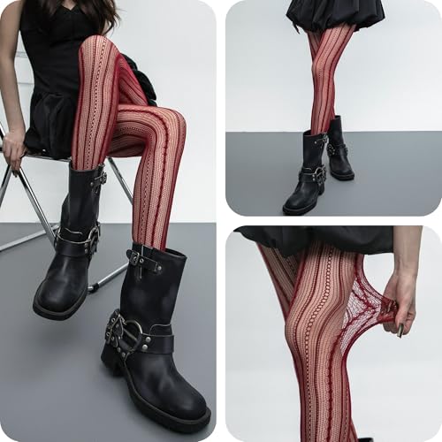 • [Stylish Patterns]: The stunning designs on these tights feature advanced technology, showcasing vertical stripes, diamond motifs, rhombus patterns, Y2K aesthetics, trendy styles, and floral motifs. Available in classic colors like black, white, gray, coffee, and burgundy, these fishnet pantyhose can effortlessly elevate any outfit, whether bold and vibrant or elegantly retro, making them a versatile addition to your wardrobe.