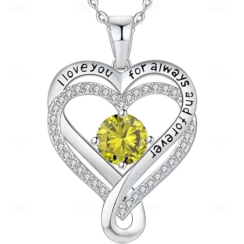 HOT ! Personalized Birthstone Heart Necklace for Her Genuine 925 Sterling Silver Jewelry Gift for Women, Anniversary, Birthday, Valentines Day