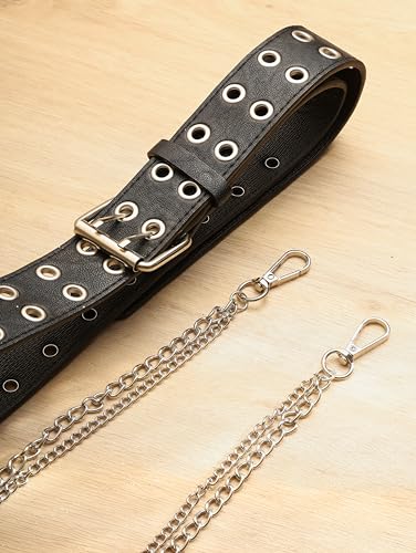 Sacina Black PU Leather Belt With Detachable Chain, Emo Punk Grunge Jewelry, Gothic Black Studded Belt for Women, Goth Accessories 4