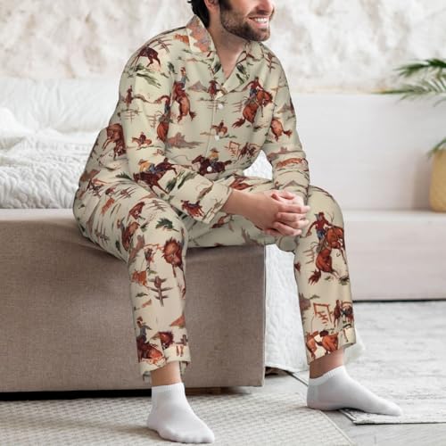 Western Cowboy Mens Pajama Sets 2 Piece Loungewear Button Down Sleepwear Pjs Set 1