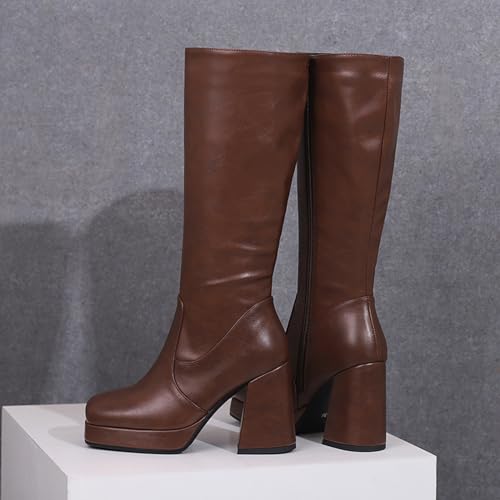 More information about Womens Square Toe Knee High Boots Block High Heels