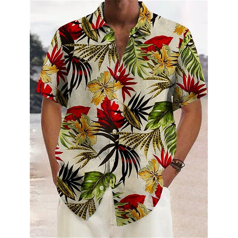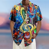 More information about Men's Music Guitar Rock and Roll Shirt Summer Hawaiian Shirt Button Up Shirt Short Sleeves Fashion Streetwear Designer Outdoor Street Casual Summer Spring Turndown Print Apricot Yellow Blue Green