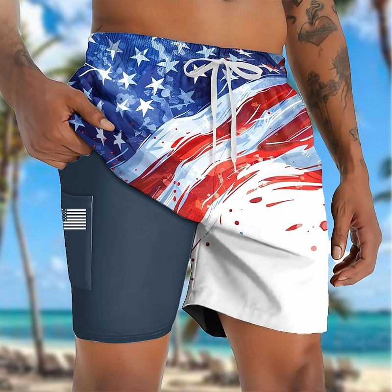 $21.99 - Men's American US Flag Patriotic Lined Shorts 2 in 1 Board Shorts Swim Shorts Mid Waist Hawaiian Vacation Holiday Beach Wear Side Pockets With Compression Liner Elastic Drawstring Waist Designer 2025. Shop for cheap Flag Print online? Buy at lightinthebox.com on sale today!