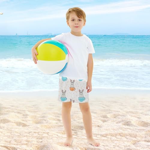 Cute Bulldogs Teacups Boys Swim Trunks with Compression Liner Quick Dry Bathing Bottom Kids Beach Shorts 6