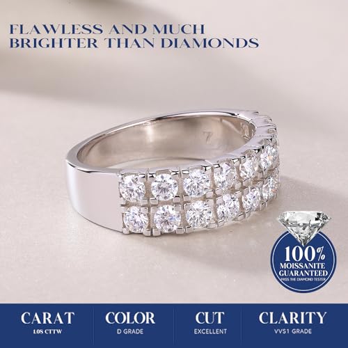 1.02 CTTW Moissanite Wedding Band Ring, 6.5 mm Double Row Half Eternity Promise Ring for Women, D Color VVS1 Round Brilliant Moissanite 925 Sterling Silver, Anniversary and Bridal Gift, All Size 2