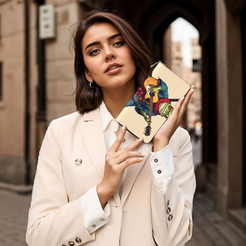 HOT ! Wallet Women - Cool Green Frog Guitar Print Leather Wallet for Women with Zipper, Cute Bifold Long Ladies Wallets