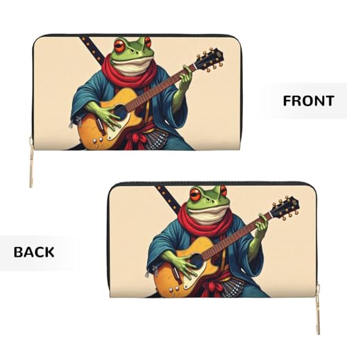 Wallet Women - Cool Green Frog Guitar Print Leather Wallet for Women with Zipper, Cute Bifold Long Ladies Wallets 1