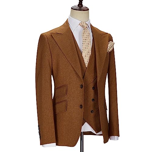 Men’s 3 Piece Suit Solid Two Button Slim Fit Peak Lapel Tuxedo Set for Wedding Business Party Blazer Vest Pants Set 7