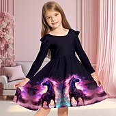 Why Choose Girls' 3D Galaxy Unicorn Ruffle Dress Long Sleeve 3D Print Fall Winter Vacation Sports & Outdoor Daily Cute Casual stunning Kids 4-12 Years Casual Dress A Line Dress Above Knee Regular Fit?