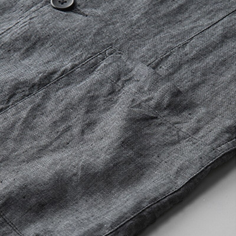 More information about Men's Linen Blazer Suits Wedding Anniversary Vacation Elegant Neutral Spring & Fall Cotton Linen Solid Color Buttons Comfy Single Breasted Two-button Blazer Dark Gray Navy Blue