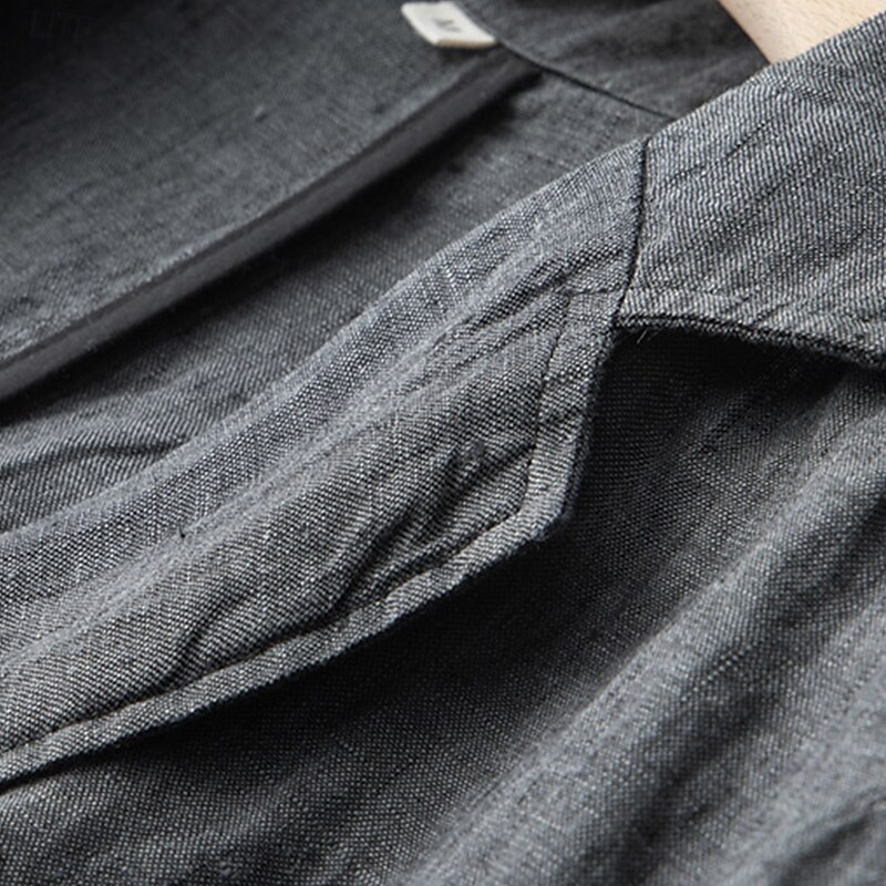 Men's Linen Blazer Suits Wedding Anniversary Vacation Elegant Neutral Spring &  Fall Cotton Linen Solid Color Buttons Comfy Single Breasted Two-button Blazer Dark Gray Navy Blue 7