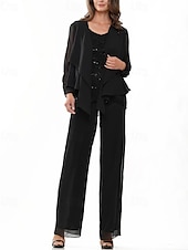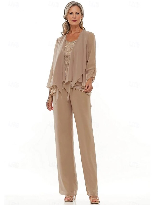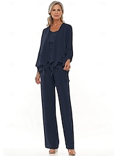 More information about Pantsuit 3 Piece Mother of the Bride Wedding Elegant Crew Neck Floor Length Chiffon Long Sleeve with Lace Ruffles