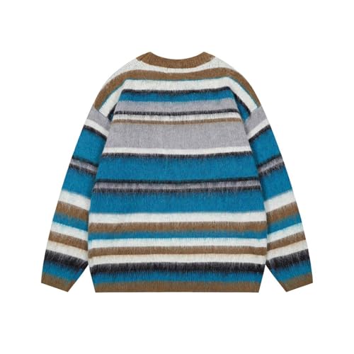 HOT ! Mens Knitted Patchwork Casual Long Sleeve Loose Fit Lightweight Ribbed Pullover Sweater Chunky Color Block Sweaters