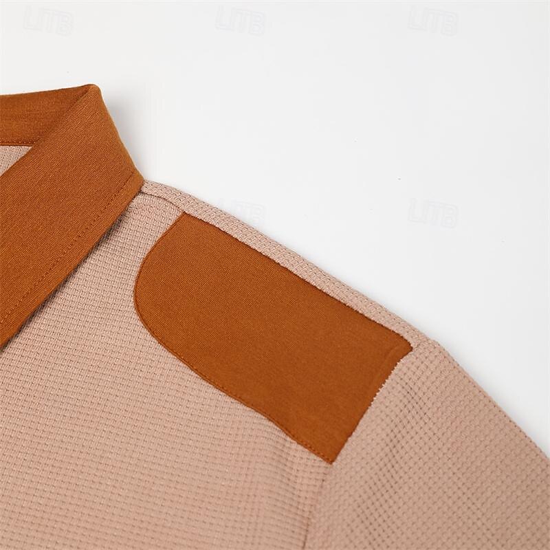 Highlights [Fabric] : Crafted from high-quality polyester, this men's polo shirt offers a quick-dry feature and a micro-elastic fit for superior comfort in any setting. [Fit] : Designed with a regular fit, this polo is ideal for casual and holiday wear, providing a classic and comfortable style that's perfect for the spring and summer seasons. [Design Highlights] : The shirt boasts a color block pattern with a classic neckline and a contrasting button-up placket, adding a touch of fashionable sophistication. The long sleeves contribute to its versatile, year-round appeal. [Occasions] : Perfect for holidays and casual outings, this polo shirt is an excellent choice for a variety of social gatherings, embodying an effortlessly stylish yet relaxed vibe. [Size Range] : Available in a range of sizes from M to 3XL, catering to diverse fitting needs and preferences, ensuring a great fit for any occasion. The shirt is offered in multiple color options including Black, Gray, Dark Navy, and Khaki.