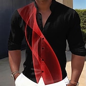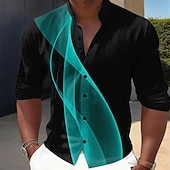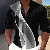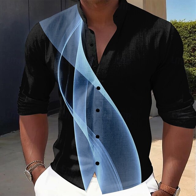 Why Choose Men's Geometric Gradient Line Shirt Button Up Shirt Stand Collar Shirt Long Sleeve Casual Outdoor Vacation Daily Spring Fall Mandarin Collar Band Collar 3D Print Linen enjoy Shirt Black Grey Black?