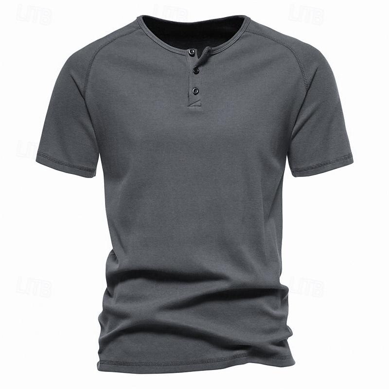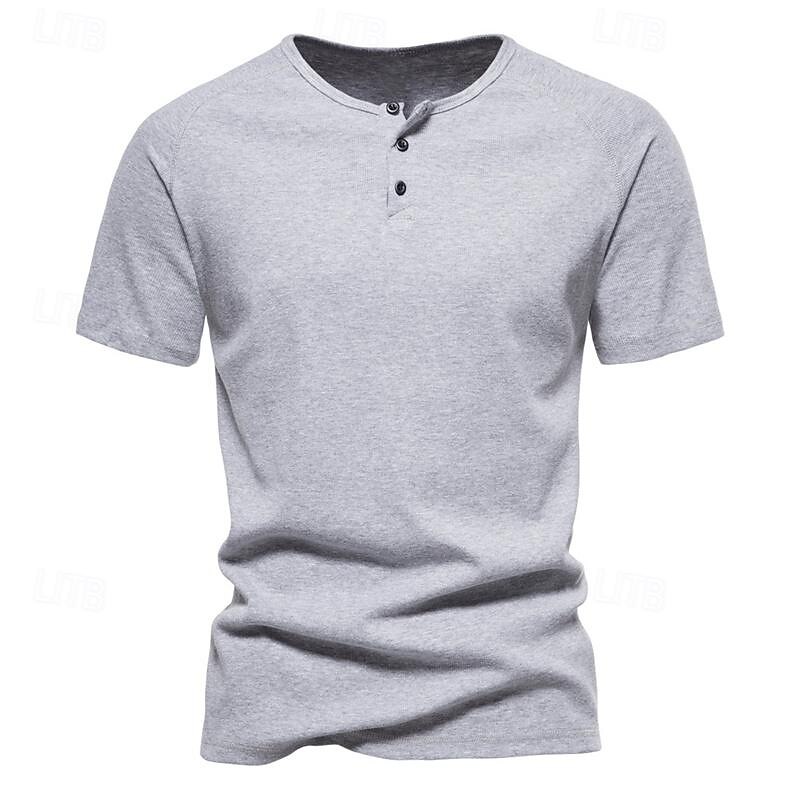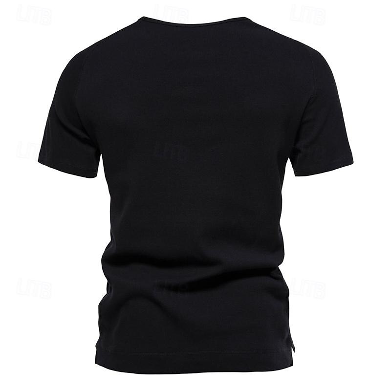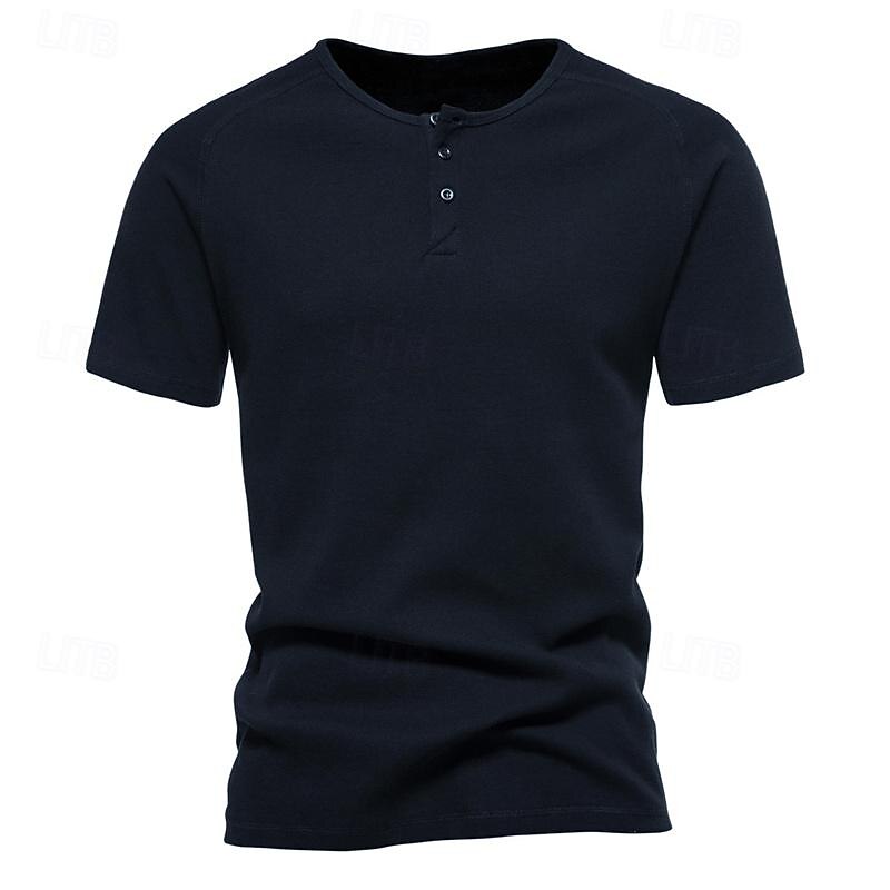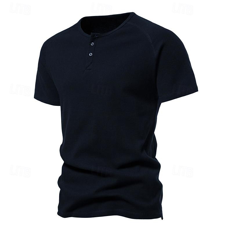 More information about Men's Button T Shirt T Shirt Henley Shirt Tee Short Sleeve Henley Spring & Summer Plain Pit Strip Fashion Designer Basic Vacation Street Going out Black White Navy Blue Top Tee for Men