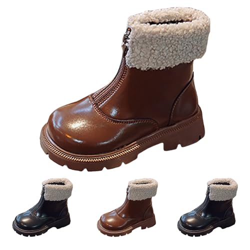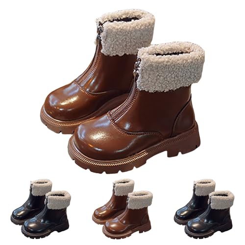 IWIHMIV Toddler Girl Ankle Boots Winter Leather Short Riding Boots with Zipper Fashion Non Slip Warm Cotton Boots 5