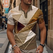 Highlights [Fabric] : Crafted from a high-quality polyester material, this men's polo shirt provides excellent breathability and a comfortable micro-elastic fit. The waffle texture adds a unique touch to the classic polo design, making it both functional and stylish for warmer seasons like spring and summer. [Fit] : Designed in a slim fit, this polo shirt emphasizes the physique, offering a contemporary edge while maintaining the timeless appeal of a traditional polo shirt. The short sleeves are tailored to give a relaxed yet put-together appearance. [Design Highlights] : Featuring a modern 3D geometric print in earthy khaki tones, this shirt is adorned with metallic accents for a refined look. The classic collar and three-button placket provide a smart-casual vibe, ideal for various settings. The geometric pattern offers a unique visual interest that sets this polo apart from standard designs. [Occasions] : Suitable for a wide range of occasions, including vacation wear, formal events, and festive gatherings, this polo shirt effortlessly transitions from casual outings to more polished environments. Its versatile style makes it an essential piece for any stylish wardrobe. [Size Range] : Available in a comprehensive size range from S to XXXL, ensuring a suitable fit for most adults. Whether for a casual day out or a more formal occasion, this polo shirt offers a chic option for diverse fashion needs.