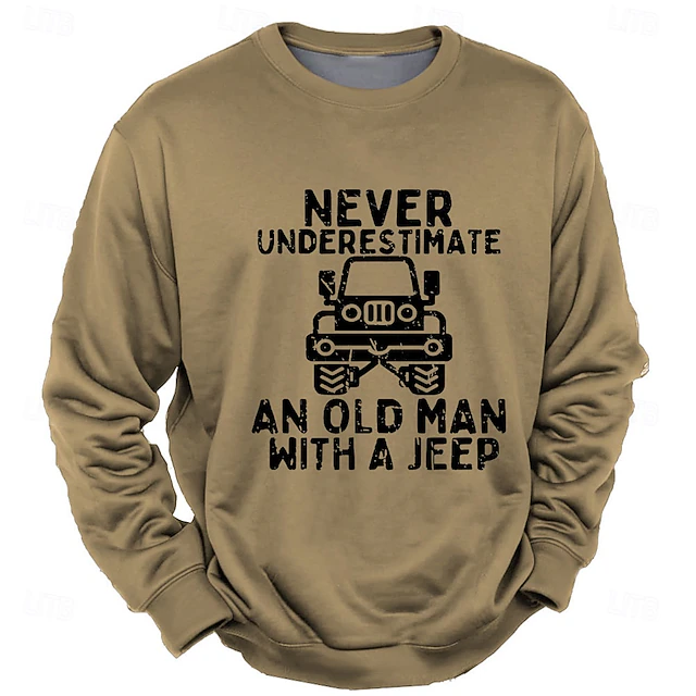 HOT ! Men's Never Underestimate an Old Man with a Jeep Graphic Sweatshirt, Long Sleeve Crewneck
