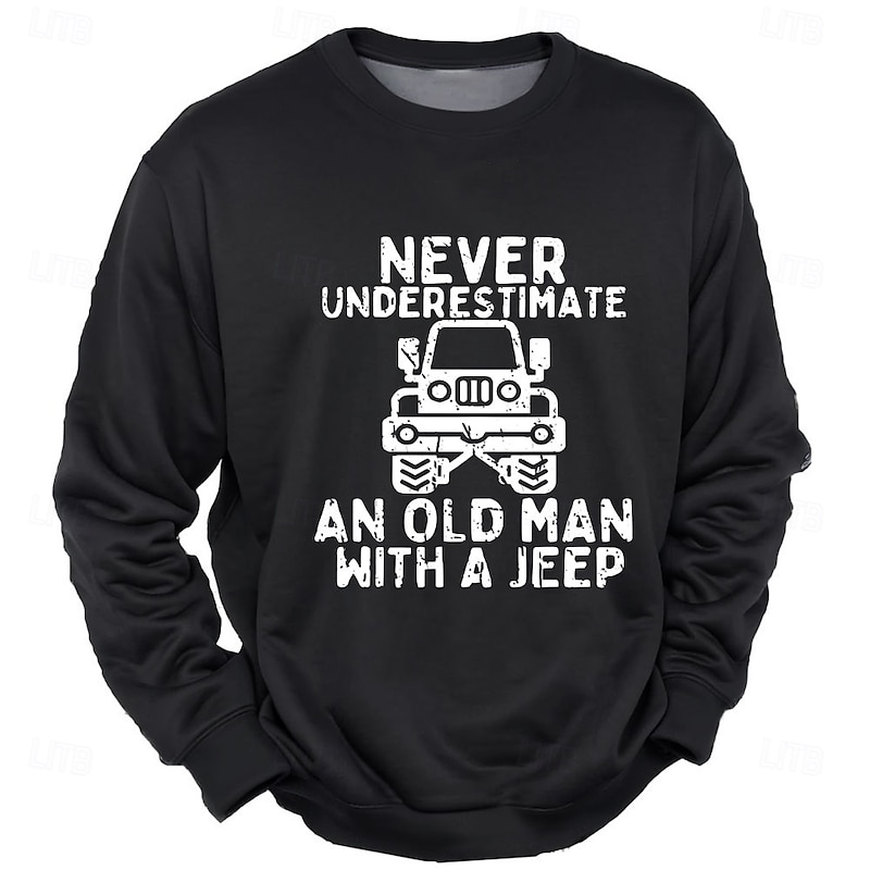 More information about Men's Never Underestimate an Old Man with a Jeep Graphic Sweatshirt, Long Sleeve Crewneck
