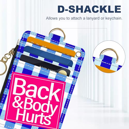 Slim Wallet Credit Card Holder, Blue Checkered X, RFID Wallet Women Cute Small Front Pocket Wallet With Zipper, PU Leather Thin travel RFID Blocking Card Case ID Window,Ladies Gifts 6