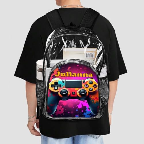 HOT ! Personalized Gamer Controller Black Clear Backpack For Kids Custom School Clear Backpack for Boys Girls With Name Back to School Gifts Travel PVC Transparent Book Bags For Stadium Gifts