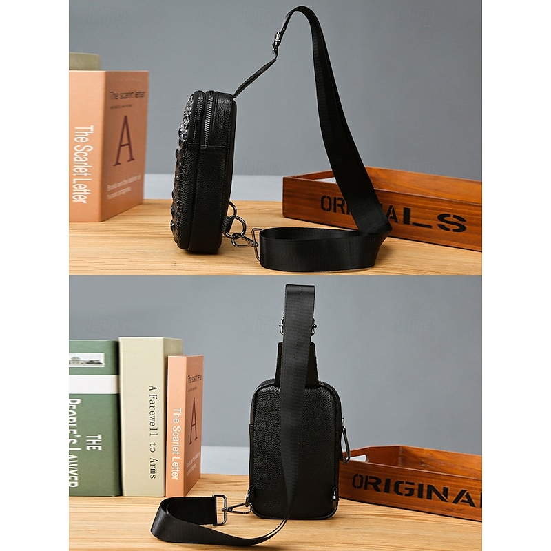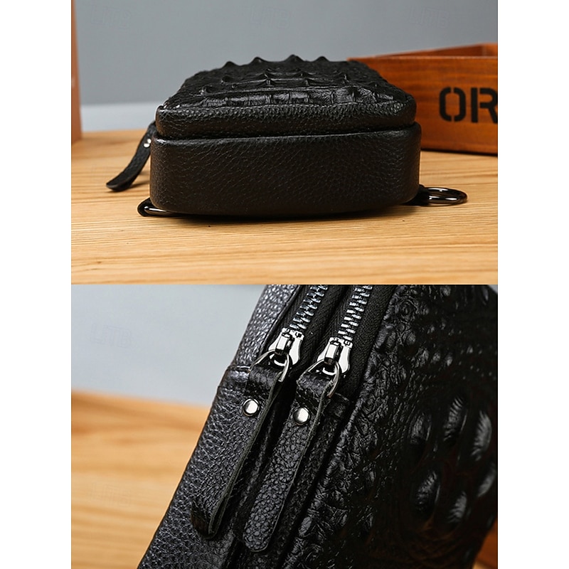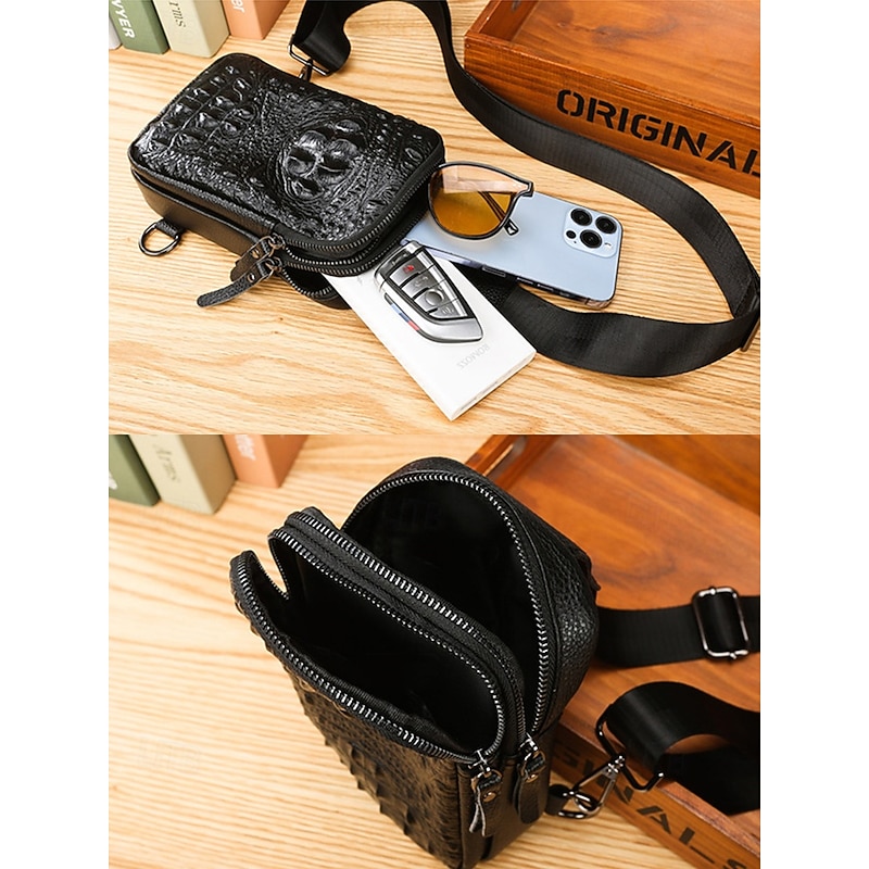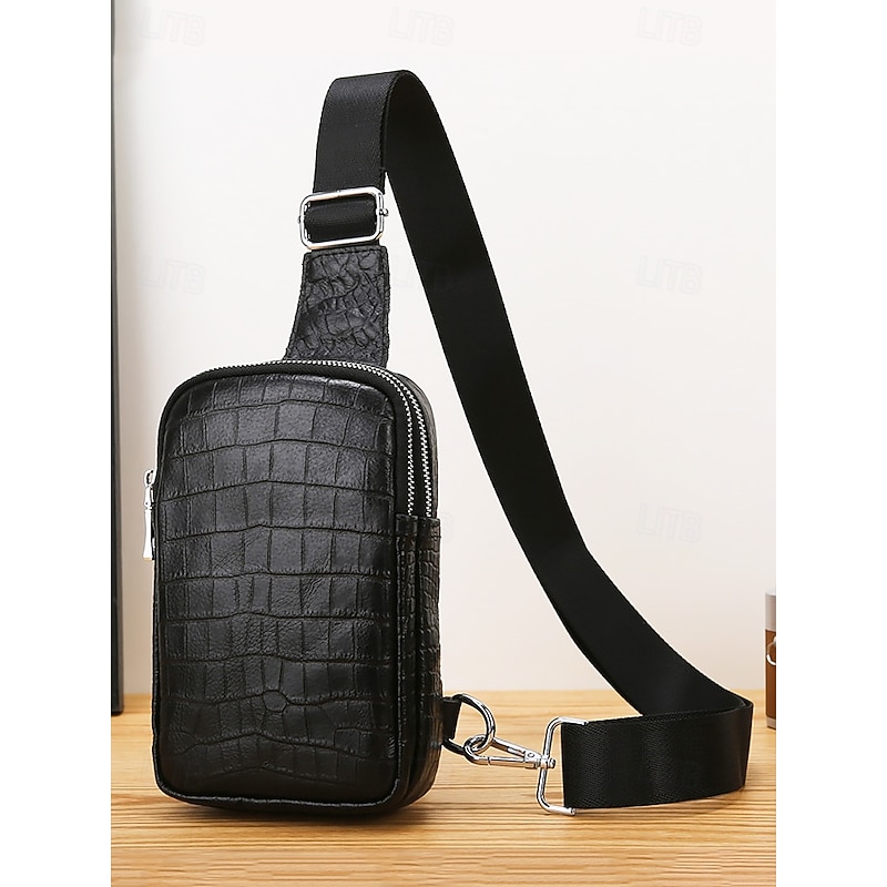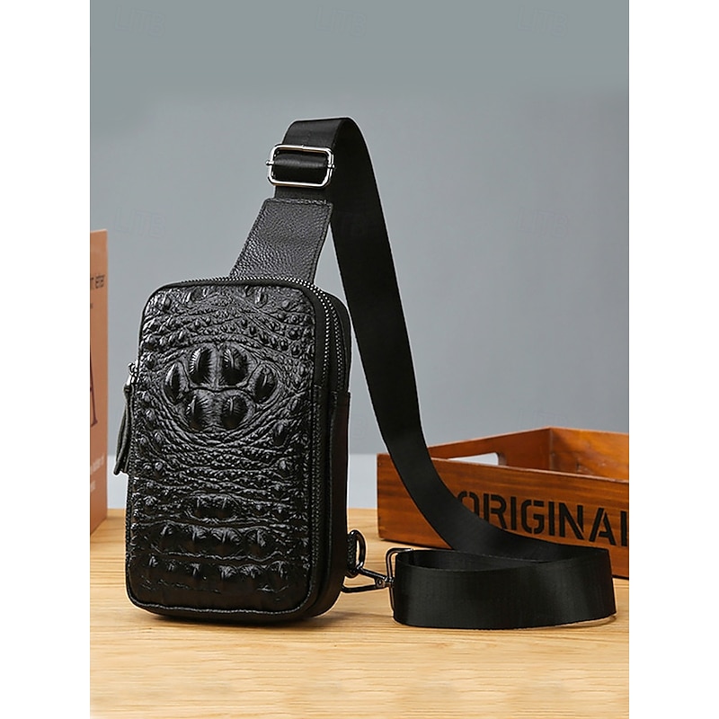 $19.99 - Black Crocodile-Embossed Leather Crossbody Bag for Men – Compact Sling Bag with Adjustable Strap for Everyday Use 2025. Shop for cheap Men's Bags online? Buy at lightinthebox.com on sale today!