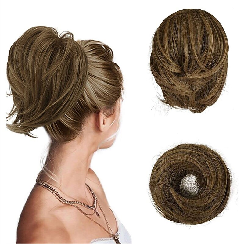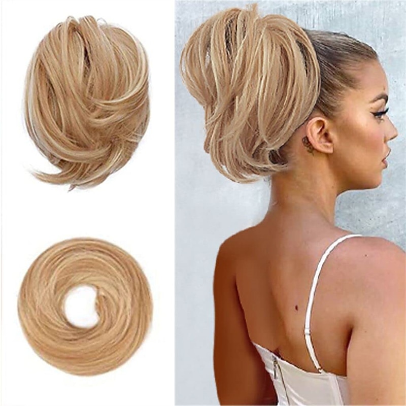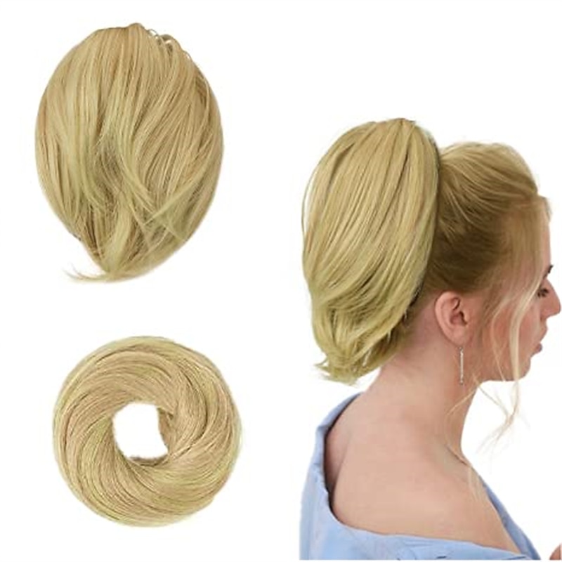 HOT ! Hair Bun Ponytail Extension Straight Synthetic Hairpiece Fully Short Ponytail Bun Extensions Hair Accessories Elastic Easy Scrunchie for Women Light Golden Brown mix Pale Golden Blonde)