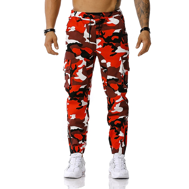 HOT ! Men's Cargo Pants Cargo Trousers Trousers Camo Pants Elastic Waist Flap Pocket Camouflage Full Length Work Holiday Cotton Blend Stylish Casual / Sporty Army Green Red Micro-elastic
