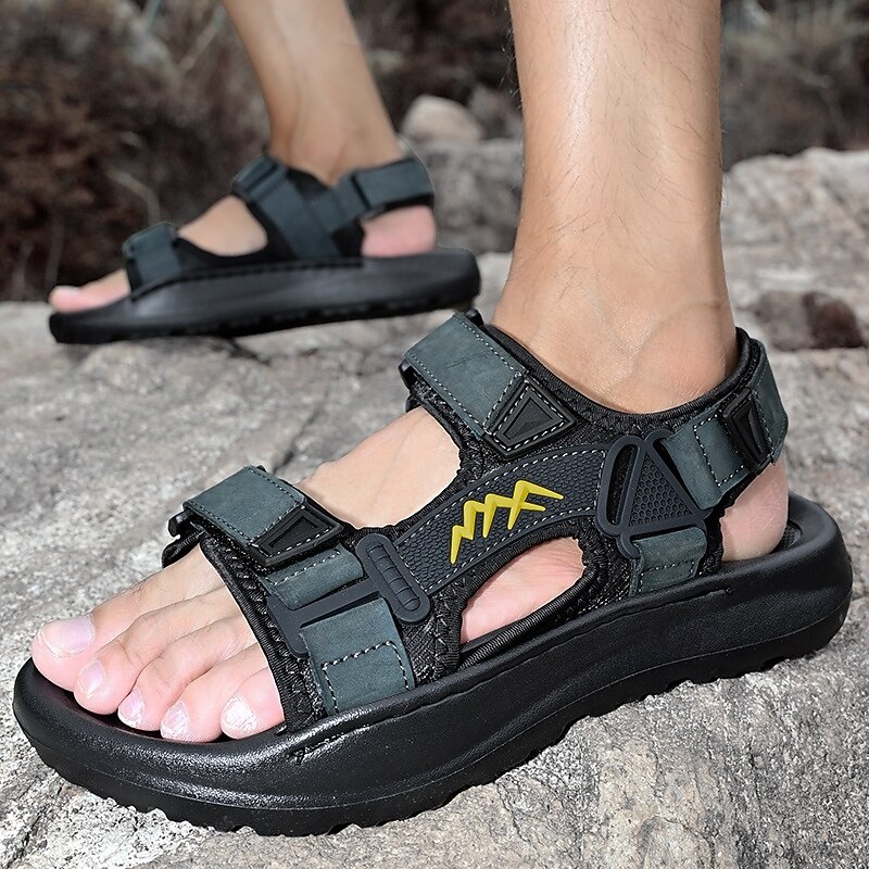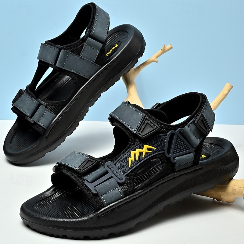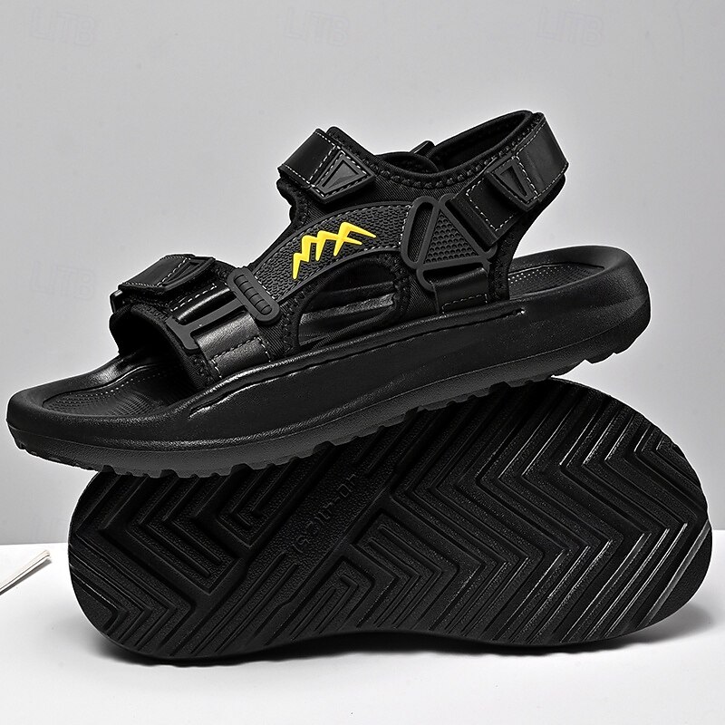 Men's Black Sporty Sandals with Adjustable Straps and Sturdy Sole – Versatile Footwear for Hiking, Walking and Casual Wear 36