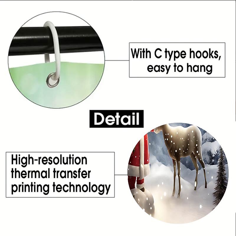 Christmas Bathroom Deco Shower Curtain with Hooks Bathroom Decor Waterproof Fabric Shower Curtain Set with12 Pack Plastic Hooks 3