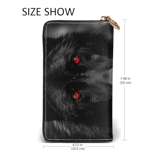 HOT ! Black Red Eyed Wolf Women Wallets Leather Zip Around Clutch Purses Waterproof Credit Card Holder With Phone Holder Ladies Travel Coin Purse