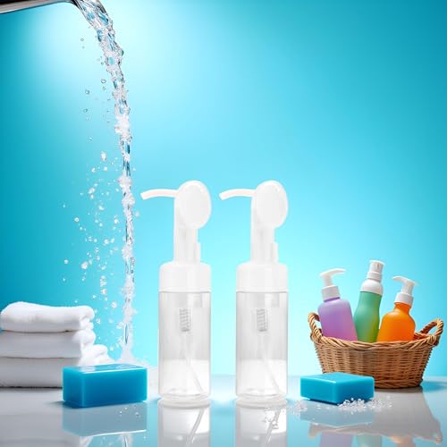 1Pc Transparent Empty Plastic Foam Dispenser Bottle Refillable Foaming Bottles Soap Dispenser Pump Bottles with Gel Head Wash Brush for Cleaning Travel 200ml,Refillable Containers 2