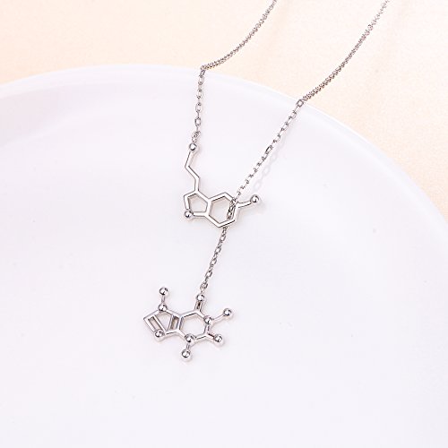 • Design - Serotonin is a neurotransmitter that contributes to our well-being and happiness. It helps regulate our mood, appetite, and sleep patterns. This simple and elegant serotonin necklace shows your enthusiasm to science, Individual molecule design leads to a versatile fashion atmosphere, suitable for daily wear