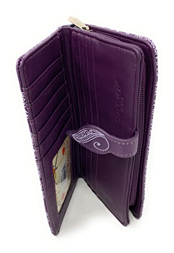 HOT ! Shag Wear Shadow Cat Large Wallet for Women and Teen Girls Vegan Faux Leather Purple 7"