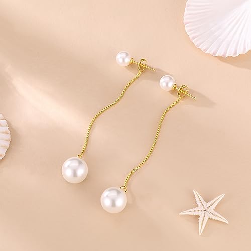 • DESIGN: These elegant pearls earrings are designed in dangle. Feature a dangle chain connecting to a big pearl and pearl stud, these earrings add a simple and easy accessory for your everyday fashion.