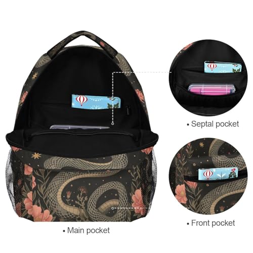 Backpack Snake Flower Boho Black for Women Men Laptop Travel Backpack Book Bag Daypack 11.4 ×16 In 4