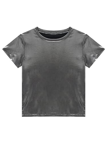 Hedmy Women's Shiny Metallic Tops Holographic Crop Top Short Sleeve T Shirt Vest Disco Party Blouse 5