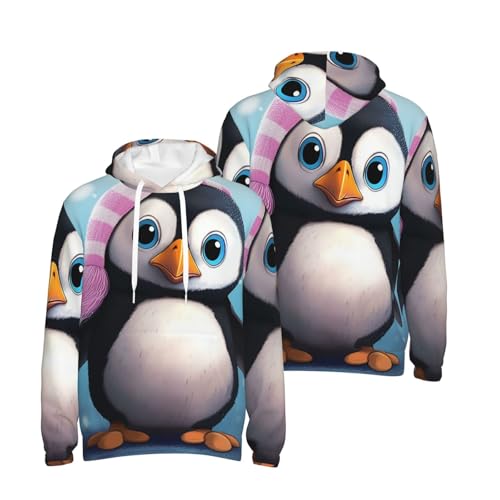 Men's Fleece Pullover Hoodie Long Sleeve Hooded Lovely Penguin Sweatshirt Casual Shirts With Pockets