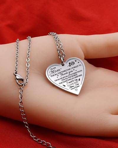 • 【To My Mom Heart Necklace】Inspired by the Heart Shape, these necklace are crafted by artisans Engraved What you want to say to her on metal Stainless Steel Jewelry,“To My Mom - For all the times that forgot to THANK YOU for all the special little things you do for all the words that somtimes go unspoken I needto say I LOVE YOU mom. I do-Lover,Your Daughter.” making a simple but interesting statement, perfect for everyday wear will make her charmer and interesting, beautiful and attractive.