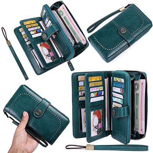 HOT ! Wallets for Women PU Leather Credit Card Holder with RFID Blocking Large Capacity Wristlet Purse, Black, One Size