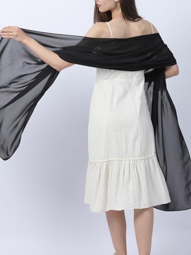Sheer-Silk-Scarf for Women Black Long Scarf Chiffon Shawl Wrap for Evening Dresses Wedding Party Dress Accessory 6