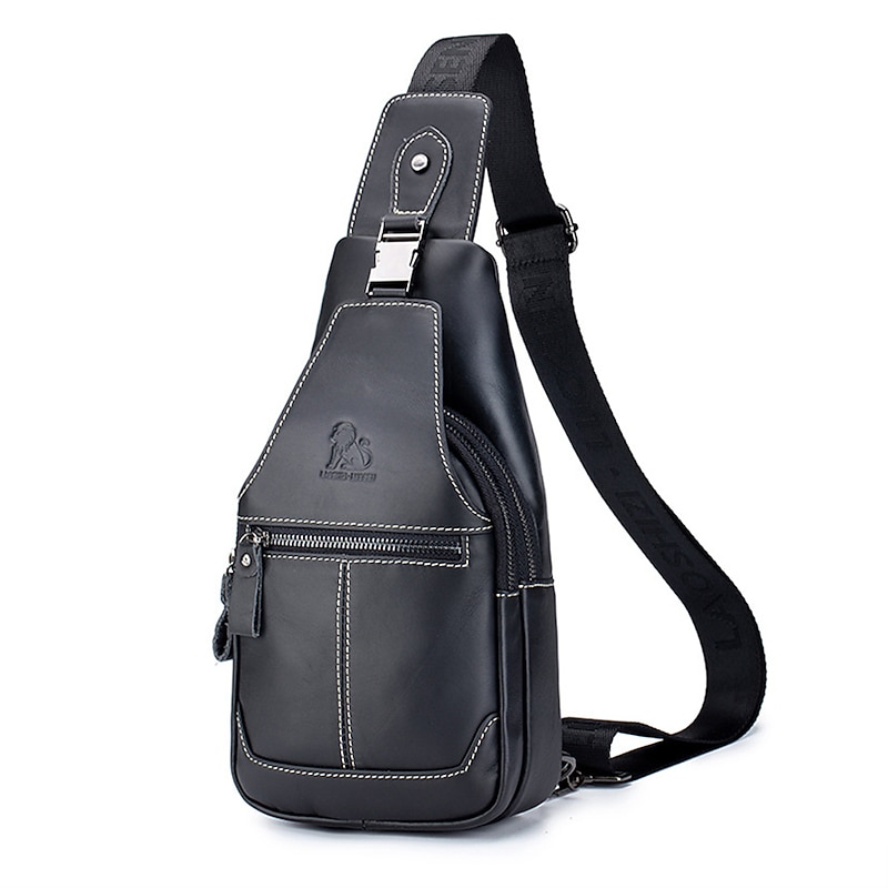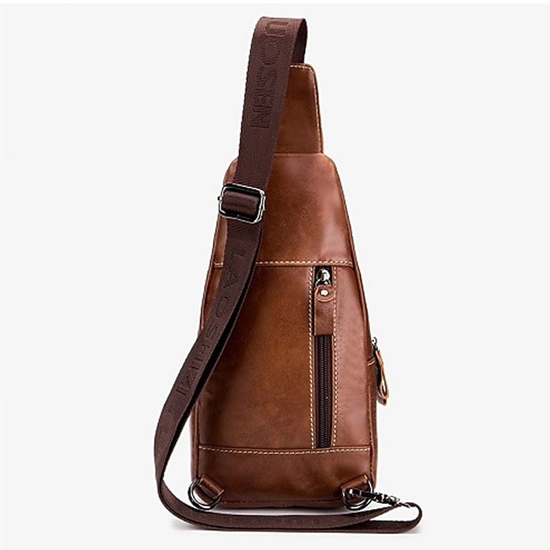 More information about Men's Brown Leather Sling Bag with Adjustable Strap and Multiple Zipper Pockets – Stylish Crossbody Travel and Casual Shoulder Bag