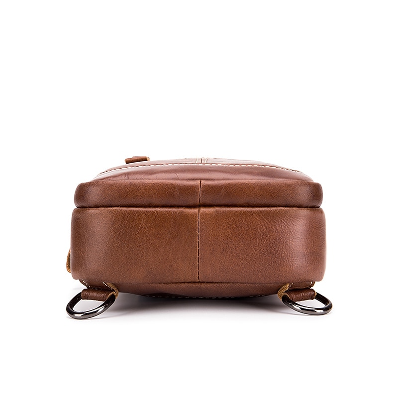 Men's Brown Leather Sling Bag with Adjustable Strap and Multiple Zipper Pockets – Stylish Crossbody Travel and Casual Shoulder Bag 19