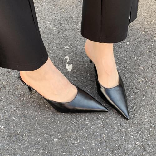 • 【Stylish and chic design】These mules have a classic pointed toe shape and an 8cm stiletto heel, exuding elegance and modernity. Available in shiny metallic (silver, gold) and classic tones (black, white), the open heel design is easy to put on and take off. Whether it is a workplace dress or a dinner look, it can add a sense of sophistication to any look.