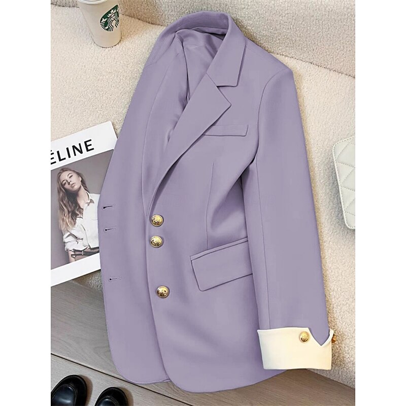 HOT ! Women's Blazer Comfortable Breathable Pocket Casual Plain Office Street Casual Daily Wear Single Breasted Regular Turndown Regular Fit Long Sleeve Outerwear Black Blue Purple Summer Spring