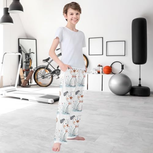 Boy's Pants Cartoon Dog White Jogger Pants Elastic Waist Long Bottoms Trousers with Pockets 6-14 Years 7