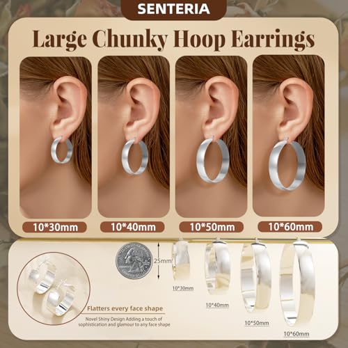 HOT ! Senteria 10mm Wide Chunky 14K Gold Plated Hoop Earrings for Women Hypoallergenic Thick 925 Sterling Silver Hoops Earring Lightweight Large Silver Hoop Earrings for Women (30/40/50/60MM)