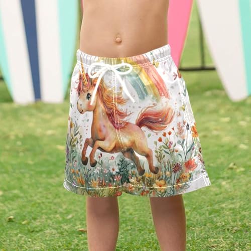 Pigsaly Boys Swim Trunks Hearts Cute Unicorn Boys Board Shorts Swimsuit Swimwear Summer Bathing Suit XS 5