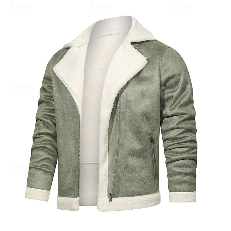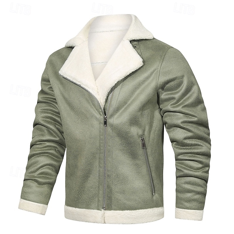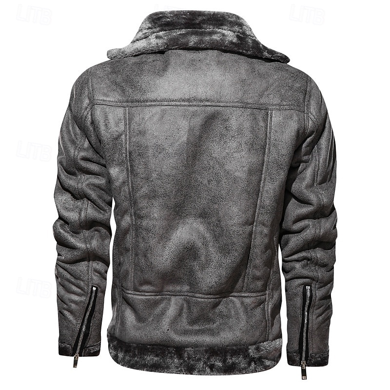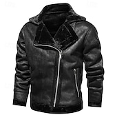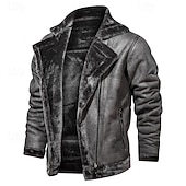 More information about Men's Faux Leather Jacket Fleece Jacket Biker Jacket Vintage Leather Jacket Vacation Daily Windproof Warm Pocket Fall & Winter Plain Fashion Classic Lapel Regular Faux Leather Black Brown Gray Jacket